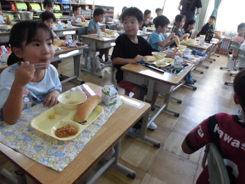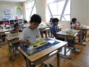 •  3・4年生の給食の様子です。