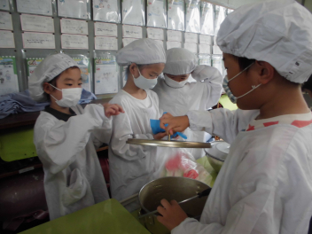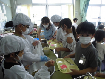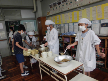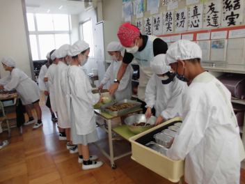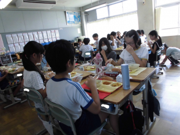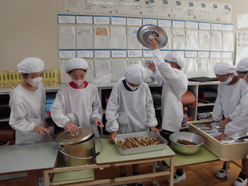 •  2・5年生の給食の様子です。