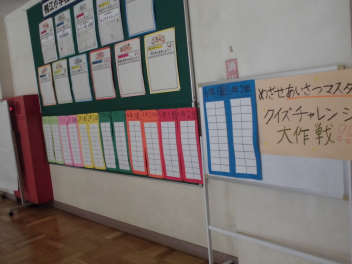「めざせあいさつマスター クイズチャレンジ大作戦!!」が始まりました。6年生が計画・運営してくれます。