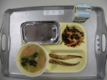 「ししゃもの唐揚げ」は、カミカミメニューです。ししゃもにでんぷんをまぶし、油で揚げました。ししゃもの旨味が凝縮されていました。