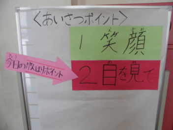 今日のあいさつポイントは、「笑顔」!!