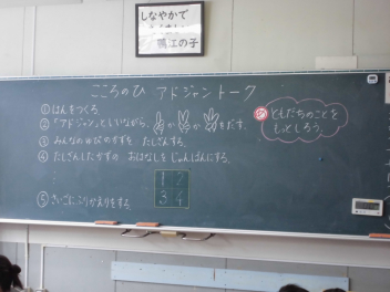 •  今日の朝の活動は、「心の日の活動 ~アドジャントーク~」です。