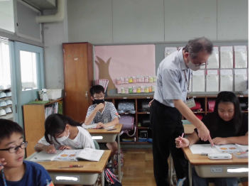 •  1年生の教室では、国語科の学習が行われていました。