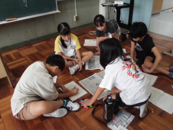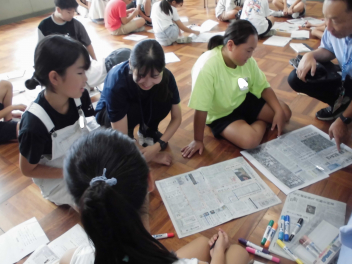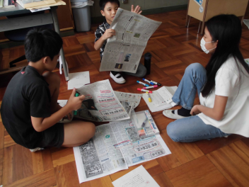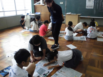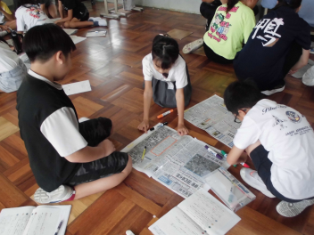 同じ内容の記事について載っている全国紙と地方紙を、比べて違いを見つけていました。