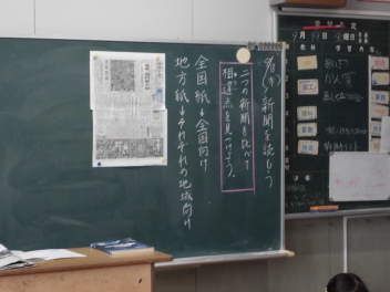今日の学習のめあては、「二つの新聞を比べて、相違点を見つけよう。」です。