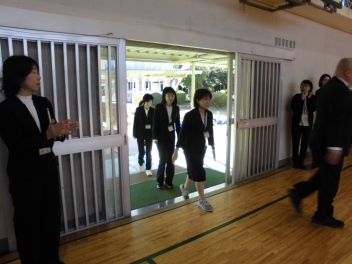 卒業生入場です。子供たちは、自分の席まで、一歩一歩ゆっくりと歩いていきました。
