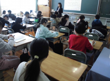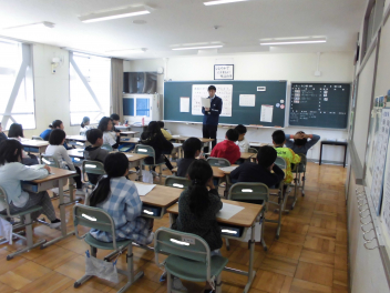教室に入ると、6年生教室での友達とのひと時を惜しむかのように、楽しそうにおしゃべりをしたり、掲示された写真を一緒にながめたりしていました。