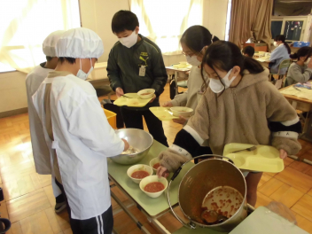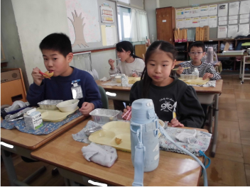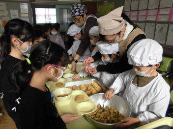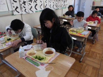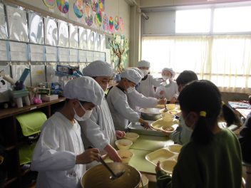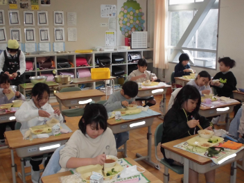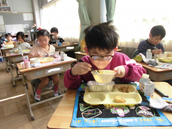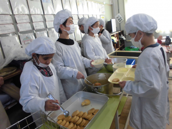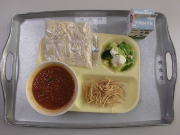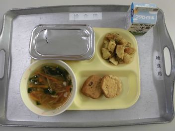 今日の主食は、「麦入りご飯」でした。麦入りご飯には、腸内環境を整え、便通改善の効果があります。また、血糖値の急上昇を抑えることや、コレステロール値を下げるはたらきがあり、高血圧症や糖尿病などの生活習慣病リスクを軽減します。