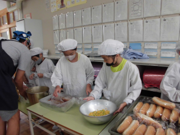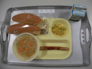 パンに「ウインナーソーセージ」をはさんで食べている子供がたくさん見られました。ウインナーソーセージがあるだけで、パンが進みます。ケチャップソースが美味しさを引き立てていました。