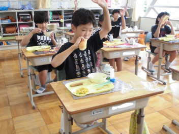 デザートは、「ぶどう」!!ぶどうの品種は巨峰です。低学年は1人1個、中学年以上は2個、提供されました。