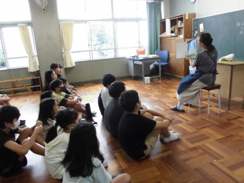 子供たちは、説明文「固有種が教えてくれること」を音読していました。
