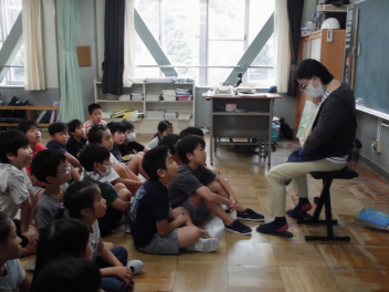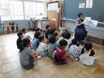 今朝は、図書ボランティアのよむよむさんによる読み聞かせで、一日をスタートさせました。