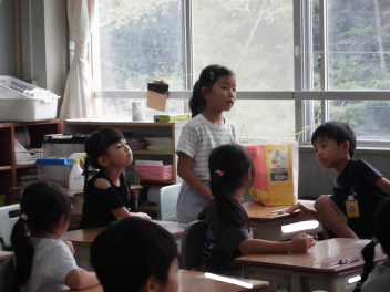 ①どんな人が来るのかな。②何をしに来るのかな。 について、自分の考えを発表していました。