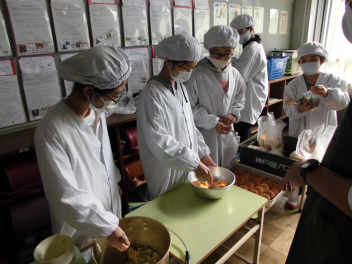 「さばの竜田揚げ」は、さばを生姜や醤油などで味付けしたものにでんぷんをまぶしてから、油で揚げました。さばのおいしさがいっぱいでした。