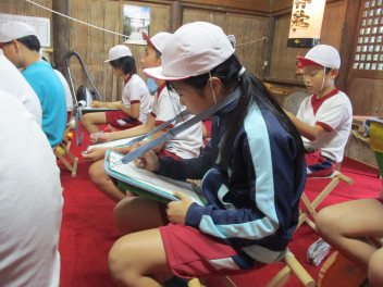 • 6年生は、11月に行われる「かなさし発見ポイントウォーク」の準備で野原神社を訪れました。