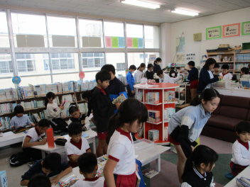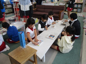 子供たちは、事前に気になる題名を選んで、各クラスへ行き、教師による読み聞かせを楽しみました。