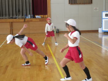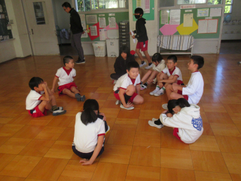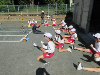 秋雨前線の影響で雨が続いておりましたが、今日は、やっと晴れ、午前中は、雲一つない快晴。少し肌寒い風も吹いておりましたが、久しぶりの外での体育です。