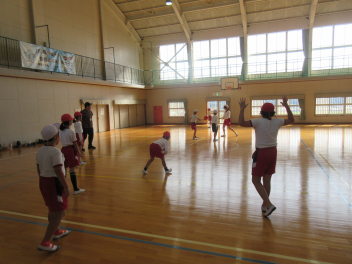 今日は、ドッジボールやハンカチ落とし、フルーツバスケットを