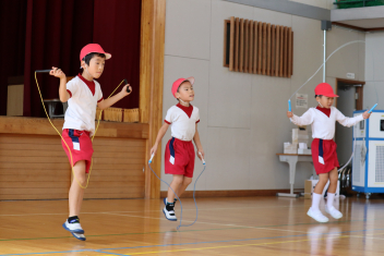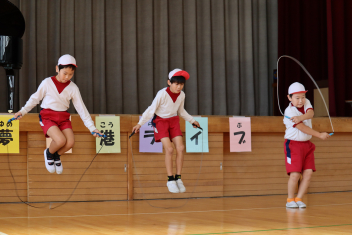 なわとびでは、軽快なリズムで二重跳びやあや跳びなどを披露!練習の成果がはっきり見えて思わず拍手!