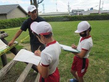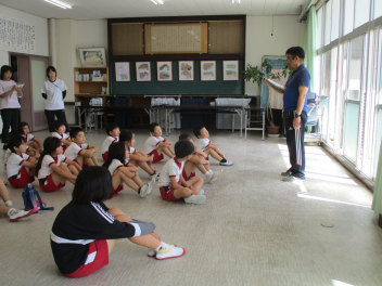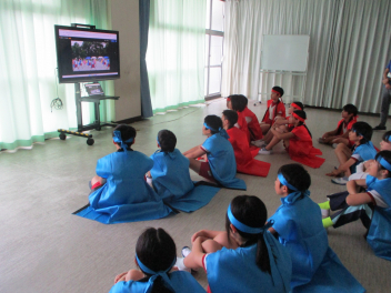 これまでのポイントウォークでは、金指地区の歴史ある場所を縦割り班で巡り、地域の方から説明を聞いたり、小学校の体育館で地域の方と昔遊びを楽しんだりしてきました。