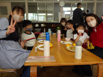昼食時間も年長さんはグループごとに食べました!
