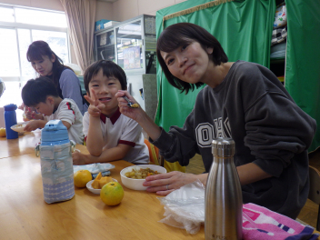 その後の昼食時間もペアの友達と一緒に食べる姿もありました!