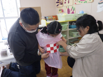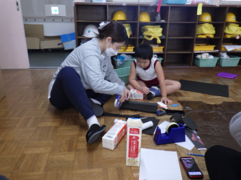 こどもたちが仮装したいものの衣装を、お家の方が一緒につくってくれます