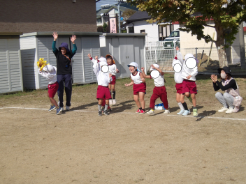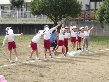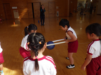 年中さんも転がしドッジボールをして、Hちゃん、Tくんがチャンピオンになりました