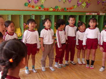 • 発表会を今月末に控え、少しずつ遊戯室を使っての表現遊びを楽しんでいるこどもたちです。