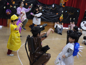 途中からは、園児も一緒に参加してハロウィンパーティーを行いました!