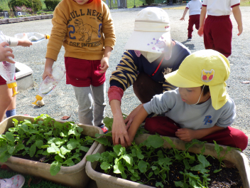 『なんか葉っぱがいっぱいになったねちょっときつそうじゃない?』と気付いた子たちが、ダイコンの間引きをしてくれました!