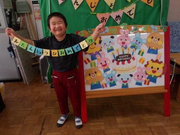ずっとこの日を楽しみにしていたHくん、みんなからのお祝いにとても喜んでいましたsad