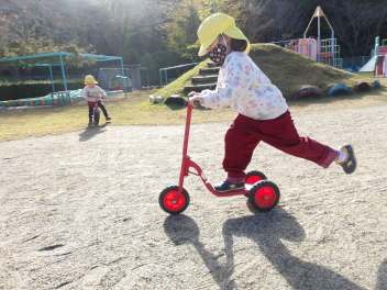 • 最近、戸外では乗り物遊具に挑戦する姿がよく見られています!