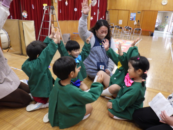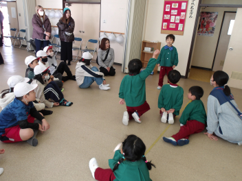 金指幼稚園のこどもたちも、そのチェックポイントの一つとして、コミュニティセンターにて交流をしました!