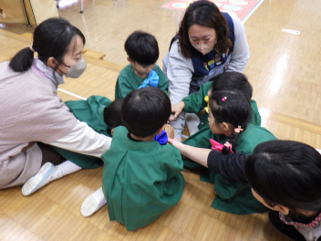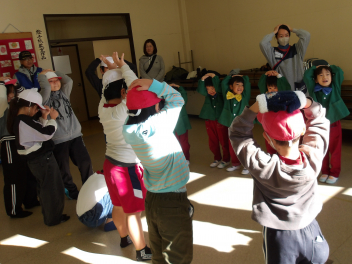 小学生のお兄さん・お姉さんがいろいろな楽しい遊びを考えてきてくれて、小学生との交流をたくさん楽しむことができました