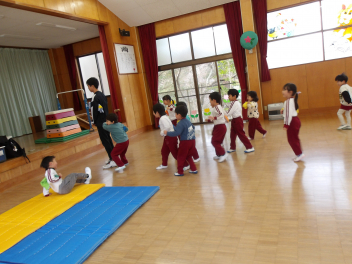 この1年間のカワイ体操教室の時間を通して、友達と一緒に楽しく運動用具に触れたり、遊びの中で体の動かし方を知ったりしながら、のびのびと体を動かして遊ぶ楽しさを味わうことができました