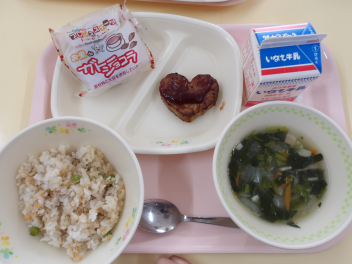 • 明日は2/14バレンタインデー・・・ということで、今日の給食はバレンタインメニューでした!