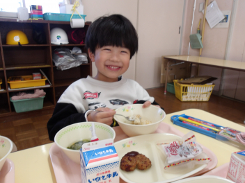 豆まき会も終わって、お部屋に戻るとこの笑顔sad
