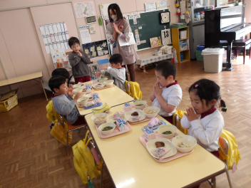 年長さん、代表で『ありがとうございます』のあいさつがしっかりできました
