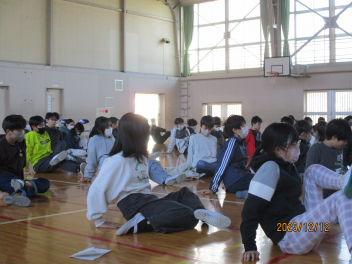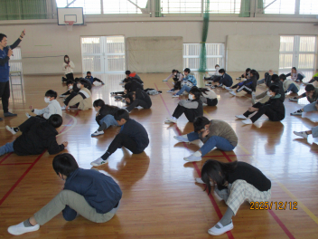 「健康」の反対は、「無関心」というお話がありましたが、まさにその通りだと思います。大人になると、自分の体の健康には、責任を持たなくてはなりません。そのためには、今の時期に姿勢に気を付けたり、ストレッチをしたりして、けがを予防するための体づくりの習慣を身に付けることが大切だと思います。今日の学びを、これからの皆さんの生活に生かしていってくださいね