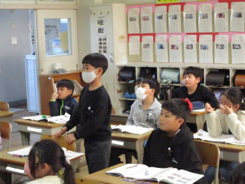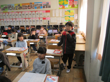 •  5年生のある学級で、国語科の授業がありました。5年生は今、「大造じいさんとガン」の学習をしています。随分と長い年月、国語科の教科書に採用され続けている有名な物語ですsadこの時間は、前の時間に行った、各場面での大造じいさんの行動の確認と、各場面での残雪の行動を読み取り、物語の内容をおおまかにとらえました。