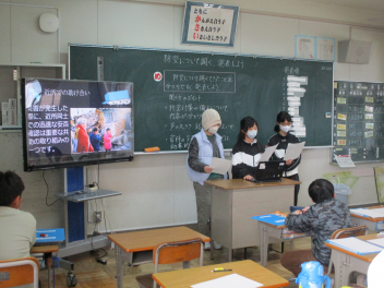5年生の皆さんは、防災について詳しく調べましたね。防災は、いざという時、命を守ることにつながりますね。発表を聞いて、とても勉強になりました。ありがとうsad