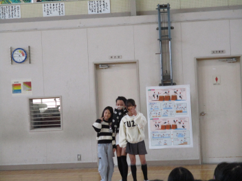計画委員会の子供たちが、全校の子供たちに、「特技を発表してみませんか?」と呼び掛けて、「我こそは!」と応募した子たちが、体育館で発表しました。「縄跳びの技」「劇」「ダンス」「跳び箱」など、様々な学年の子供たちが、様々な出し物で挑戦しましたsad体育館には、子供たちや先生たちがたくさんの観客として詰めかけ、大盛況でしたsad拍手、笑い、歓声が自然に沸き起こり、大いに盛り上がりましたsad
