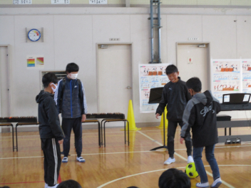 次に、ゲームを行いました。ラグビーボールの独特なバウンドに翻弄されながらも、みんなで果敢に攻めていく子供たちがとても楽しそうでしたsad