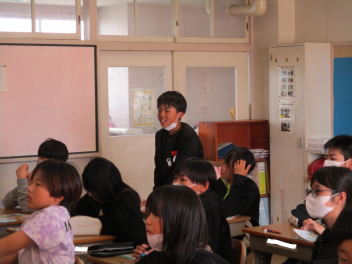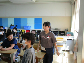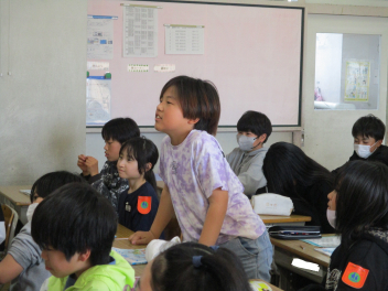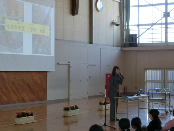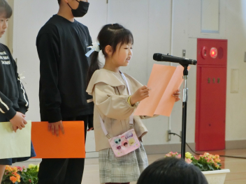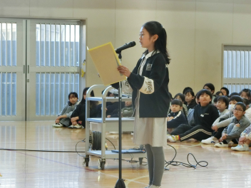 始業式では、2、4、6年生の代表の子が、今年度頑張りたいことを落ち着いて発表しました