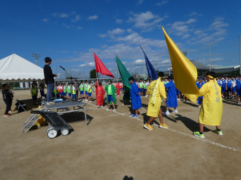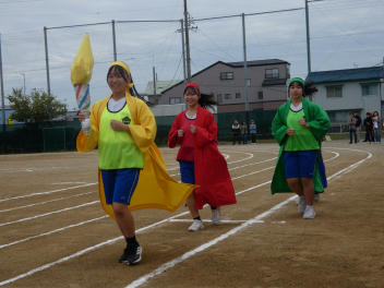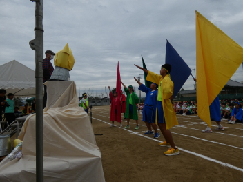 <開会式>1 選手入場 2 開会宣言 3 聖火入場 4 実行委員長あいさつ 5 校長あいさつ 6 競技場の注意
