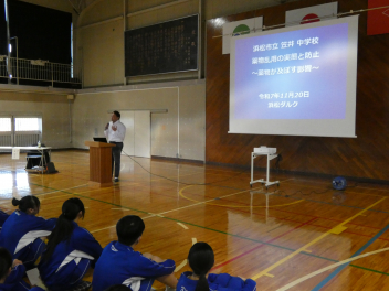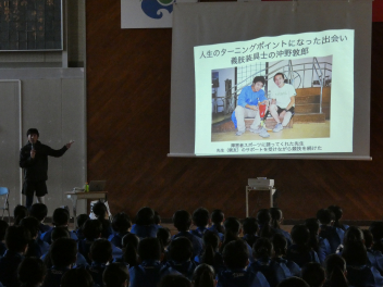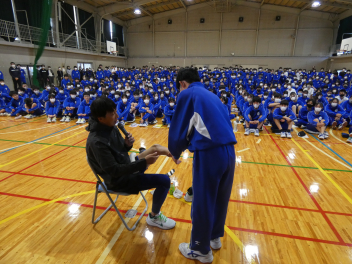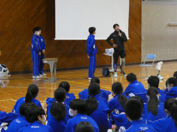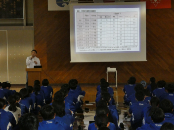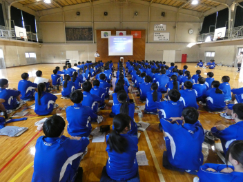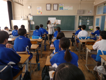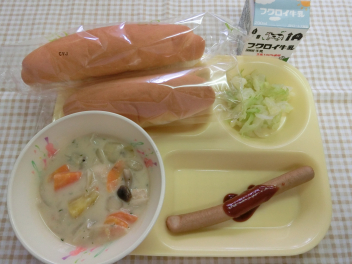 今日は「収穫祭の行事食」「和食の日」の献立です。11月23日の「勤労感謝の日」は、以前まで「新嘗祭 」といわれ、米の収穫を喜び、感謝する日でした。日本の食文化にとって実りの秋は大変重要な時期です。今日は収穫のお祝いの赤飯です。副菜の吹きよせは、木の実や葉が風でひとつに吹き寄せられた秋の風情を表現した料理です。すまし汁は、こんぶとさば節を使ってだしをとりました。一番だしは、和食には欠かせないものです。和食の日では、和食の特徴を知り、その大切さを知るきっかけの日としています。