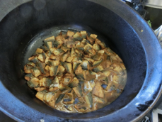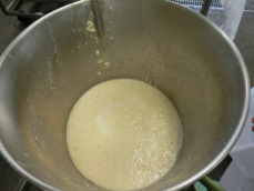 切干し大根の甘酢あえはもう少しで完成です。かき回す姿がかっこいい