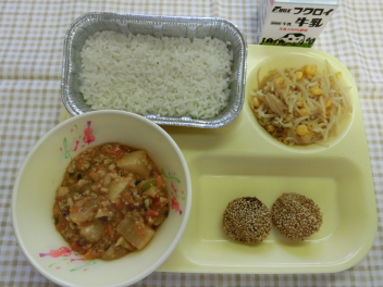 米飯 牛乳 麻婆大根 もやしの中華あえ ごま団子