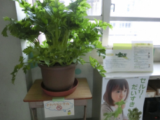今日、セロリの鉢植えが届きました。さっそく職員室前に展示しました。